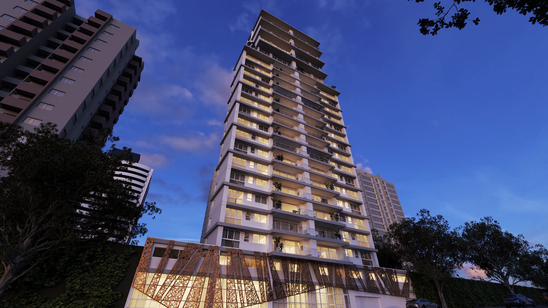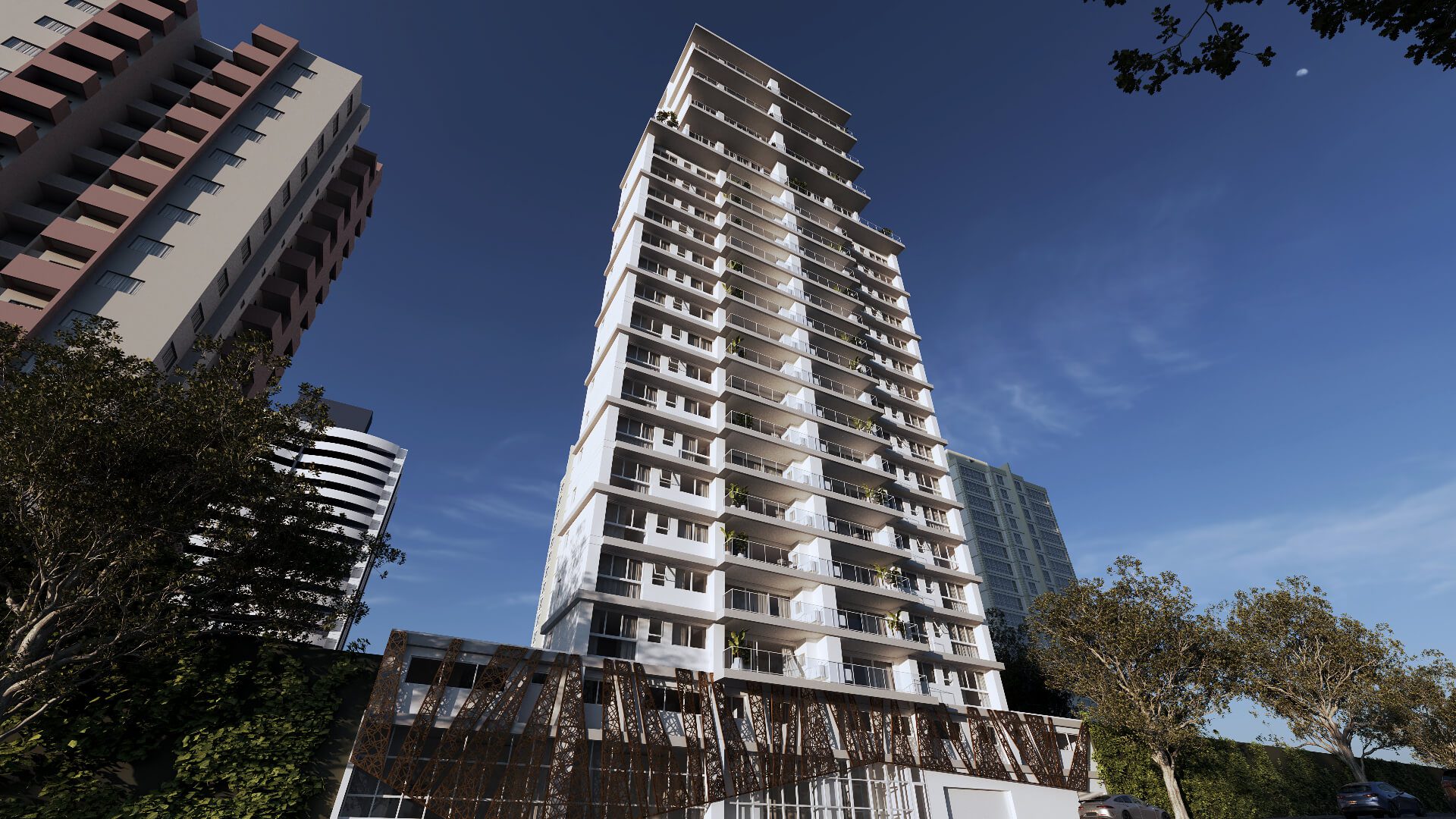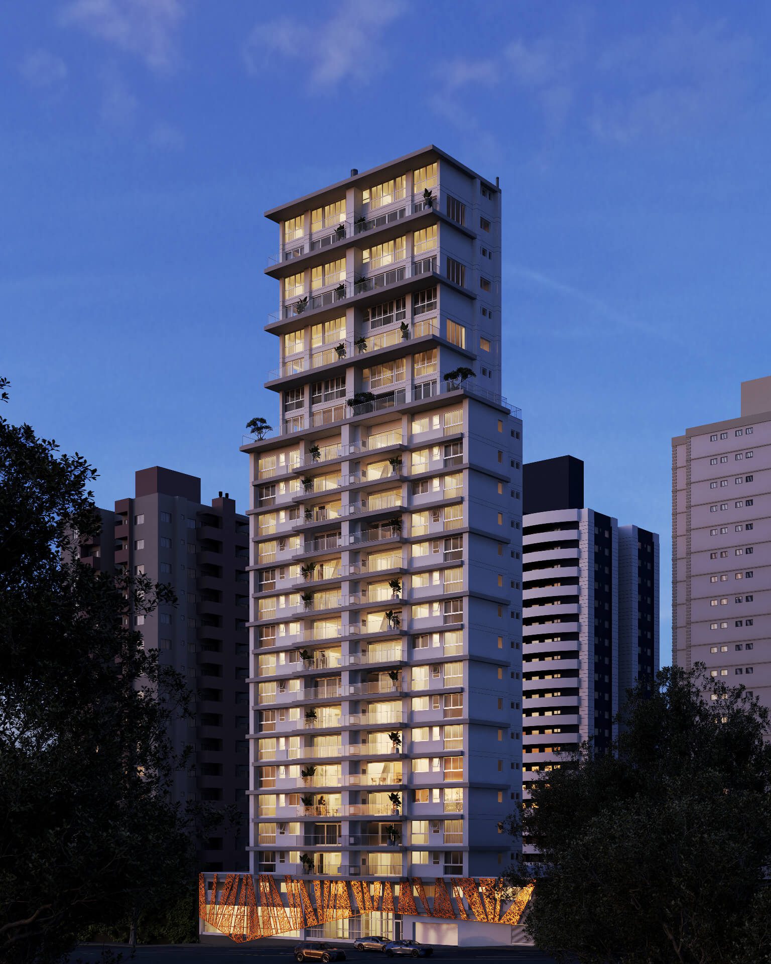 Com 25 andares o Blanc de Rouge se impõe pela sua arquitetura marcante e pela localização estratégica no Juvevê, um bairro que reúne lazer, comodidade e segurança na medida certa. São apartamentos amplos em diferentes tipologias, incluindo oito duplex e dois gardens suspensos, todos com acabamentos de alto padrão.
