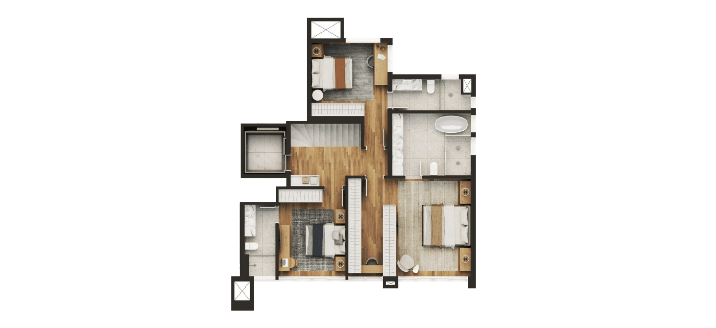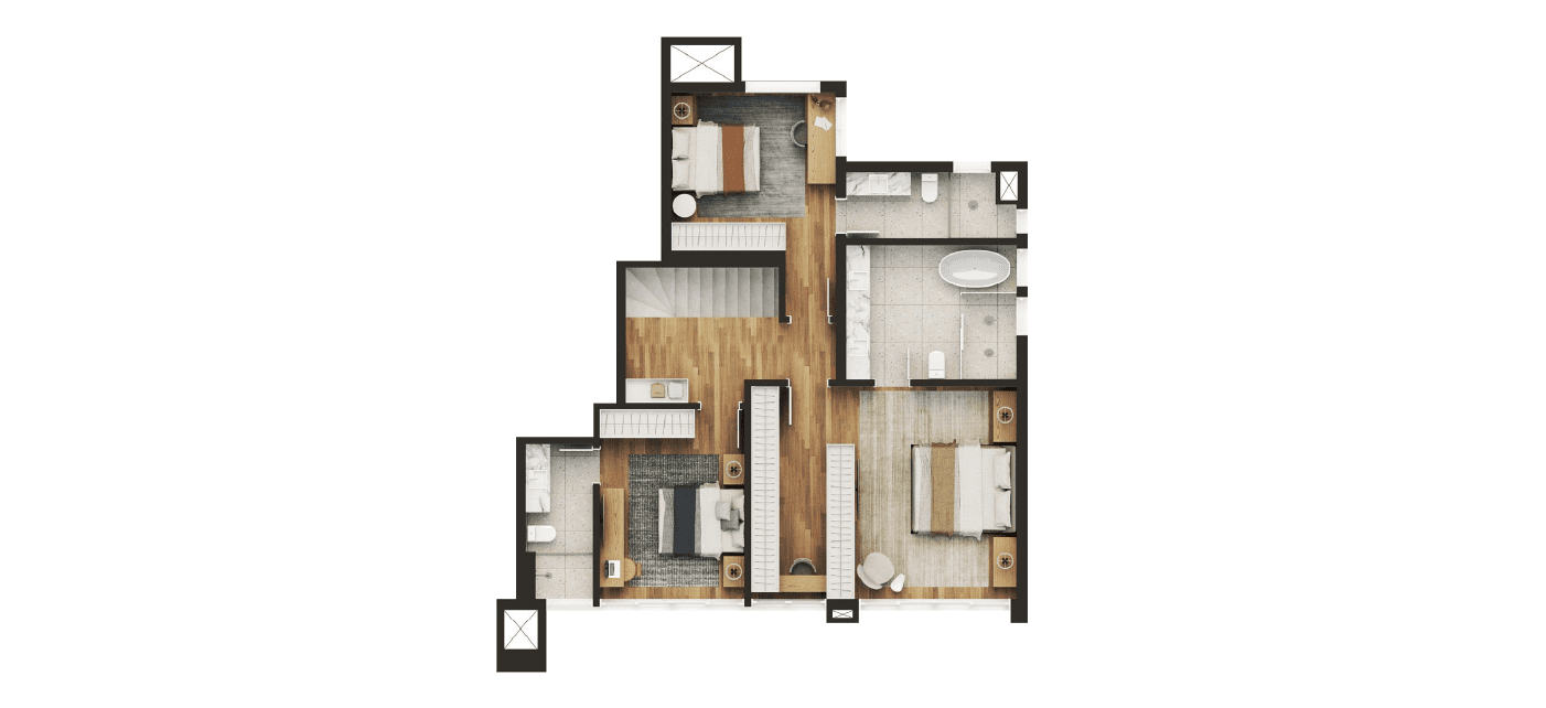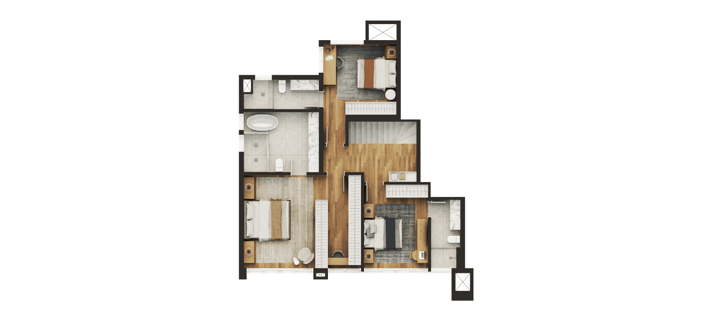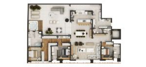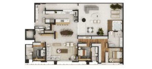 Nas áreas privativas do Blanc de Rouge, o conforto se traduz em espaços generosos, bem iluminados e com plantas pensadas para se adaptar ao seu estilo de vida. Com metragens de 154m² a 287m², os apartamentos oferecem integração fluida entre ambientes, acabamentos de alto padrão e possibilidades de personalização.